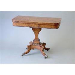 A Regency pollard oak card table with D shaped folding top, on concave squared stem, saltire platform and kneed downswept legs, fitted brass caps and castors, 3ft (see illustration) £2000-3000