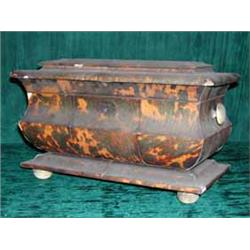 A Regency tortoiseshell sarcophagus form tea caddy in need of restoration