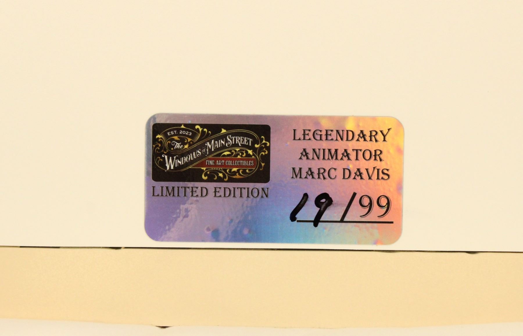 This is a Main Street Heritage Collectibles 1:1 scale replica of the Main Street window that honors Marc Davis found on Main Street, U.S.A., Disneyland . It uses the same design and build methods as the Bob Gurr replica that sits in Bob Gurr's house. It is limited edition #19 of 99, comes new in box!