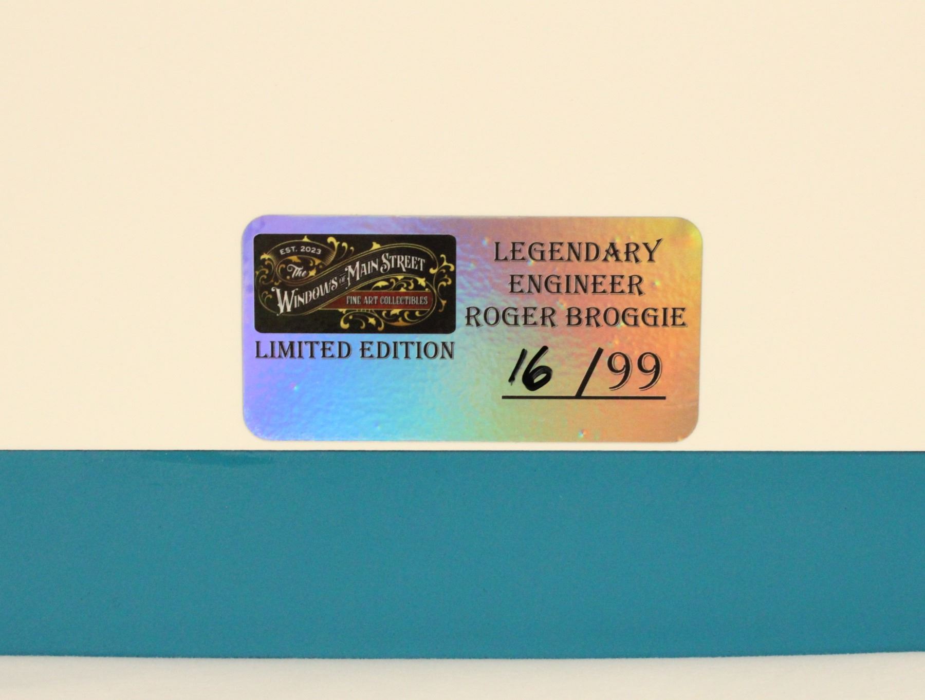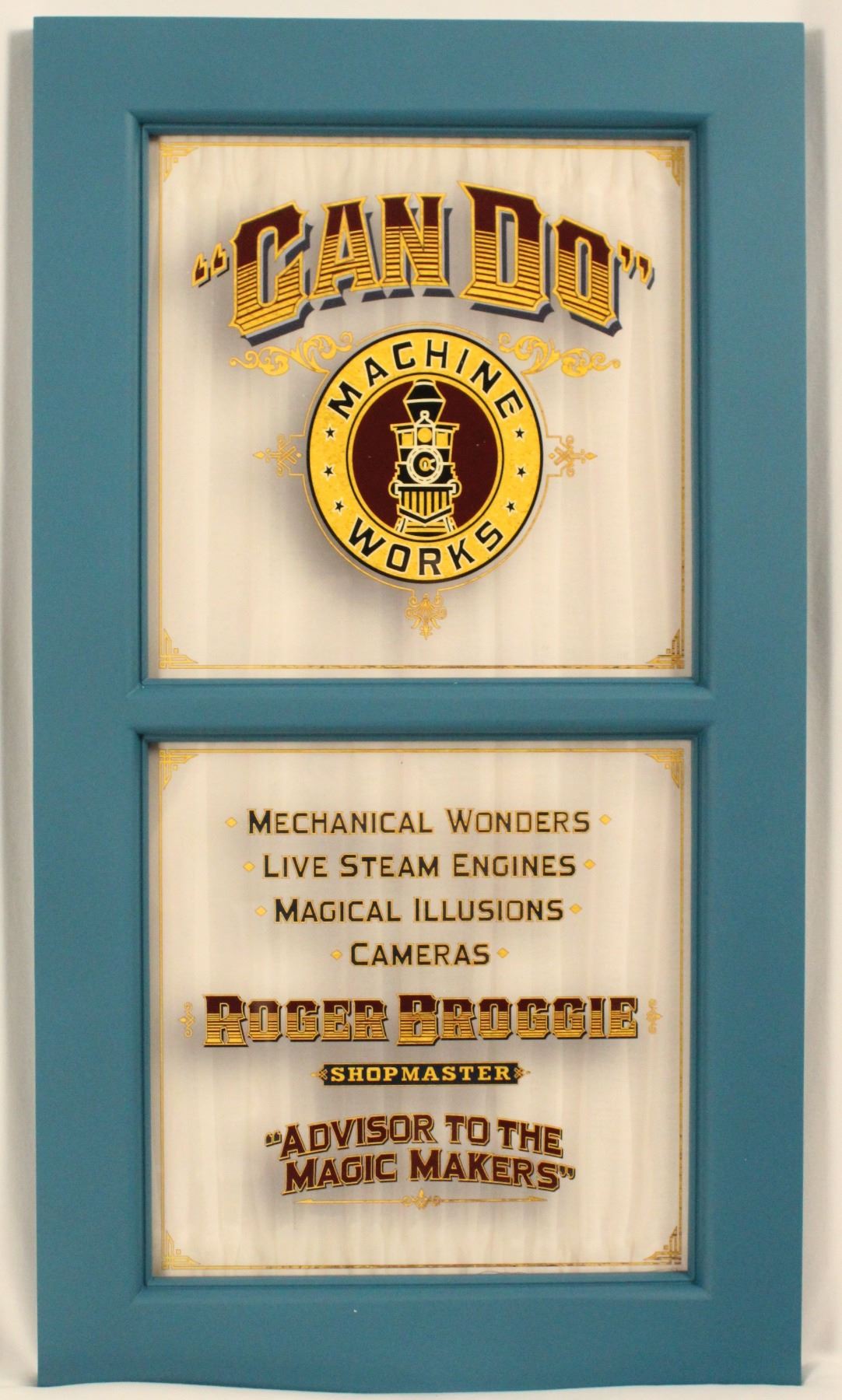 This is a Main Street Heritage Collectibles 1:1 scale replica of the Main Street window that honors Roger Broggie found on Main Street, U.S.A., Disneyland . It uses the same design and build methods as the Bob Gurr replica that sits in Bob Gurr's house. It is limited edition #16 of 99, comes new in box!