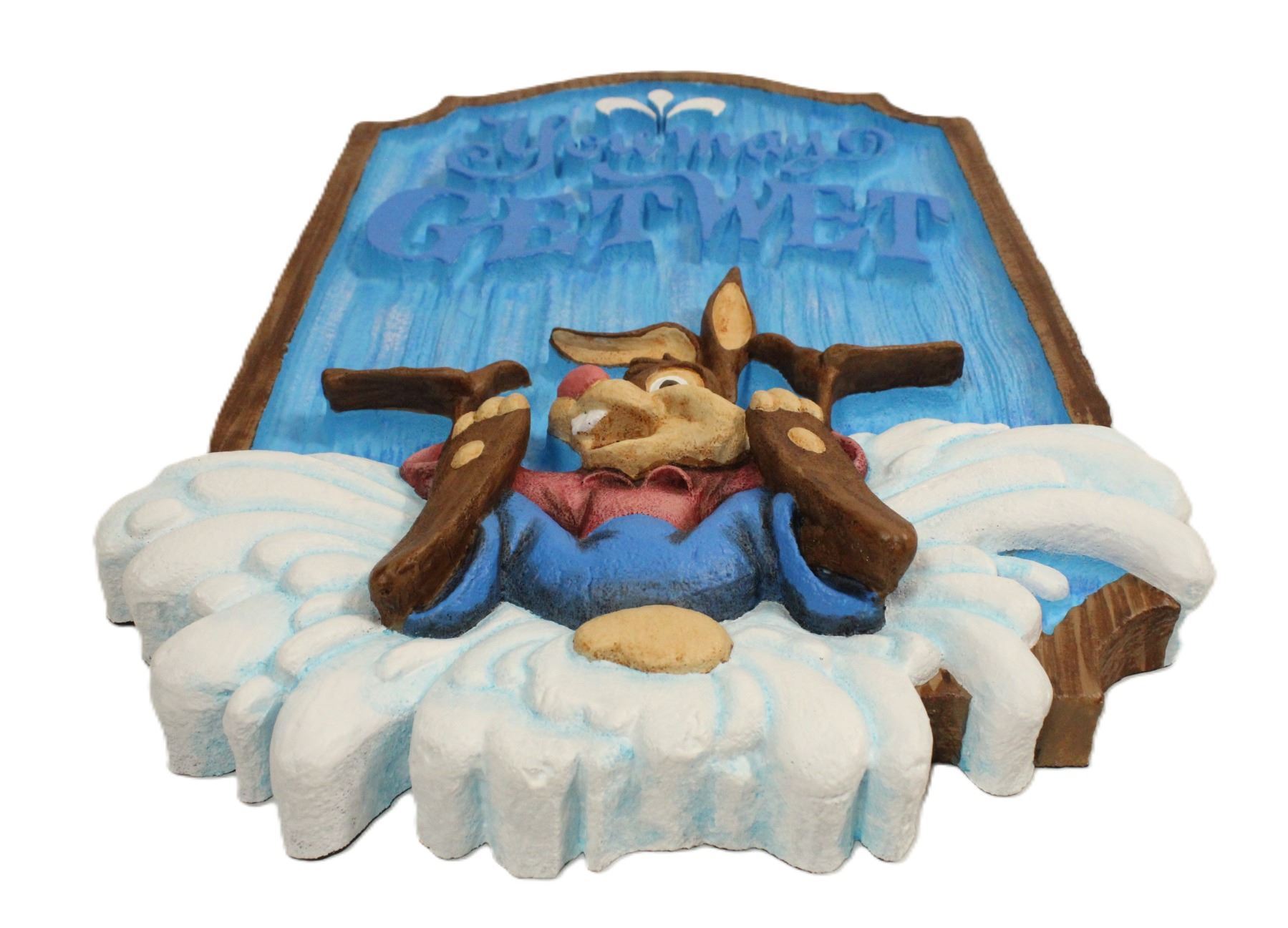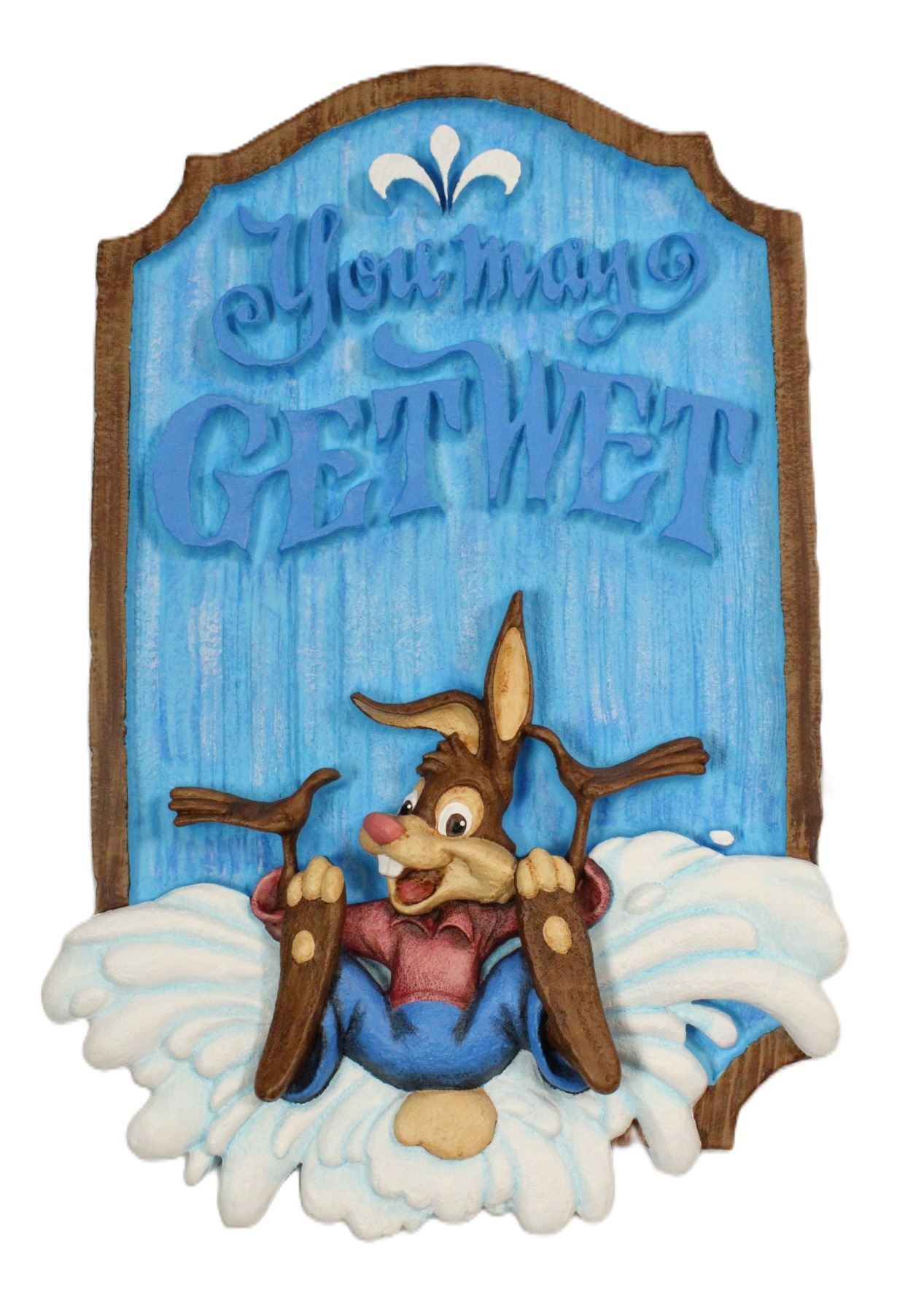 This is a Main Street Heritage Collectibles 1:1 scale replica of the sign that was hung at the entrance of the Splash Mountain attraction at both Disneyland and the Walt Disney Resort. The ride is still in operation at Tokyo Disney. It is limited edition #15 of 100, comes new in box, and is autographed on the back by Disney Legend Bob Gurr! A COA or LOA can be provided by Signature COA of Orlando for an additional fee.