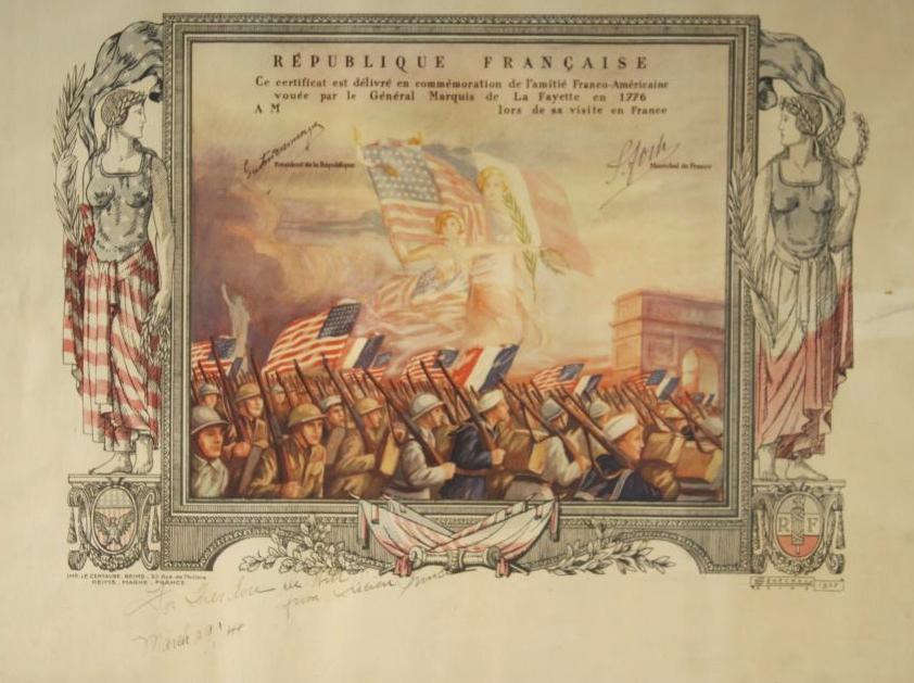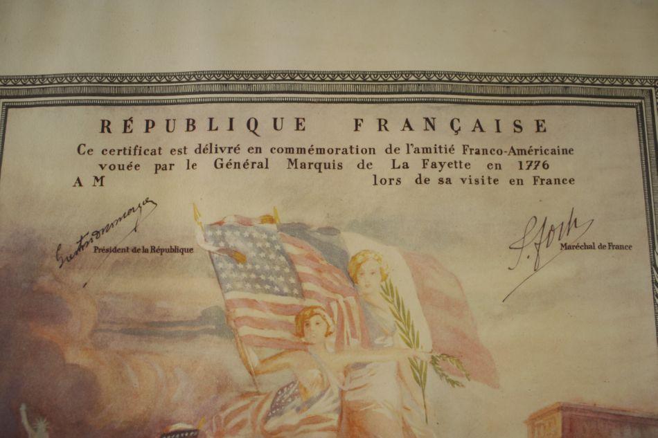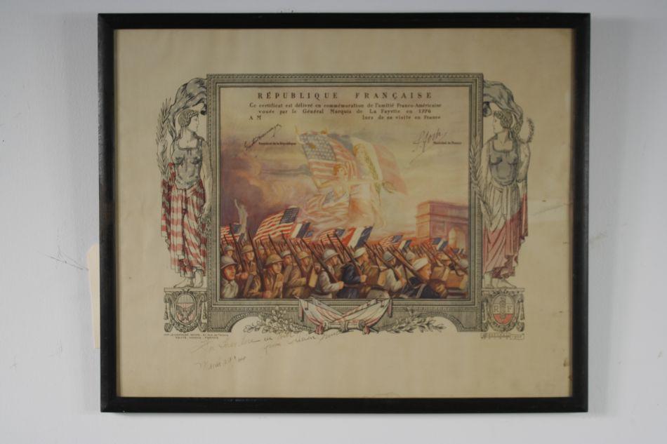 A Republique Francaise Certificate Commemorating General Marquis de Lafayette, Printed in 1927,