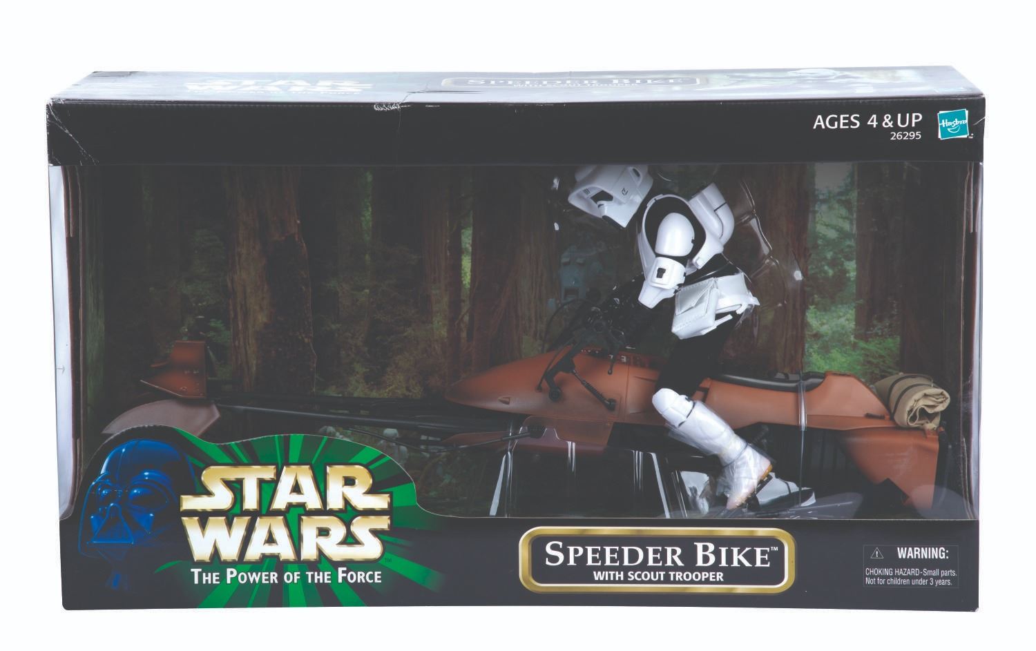 (Hasbro, 2000) A 12" Star Wars Scout Trooper action figure on Speeder Bike, as seen in"The Return of the Jedi." The figure and bike are in fine condition, unopened in the fair condition box.