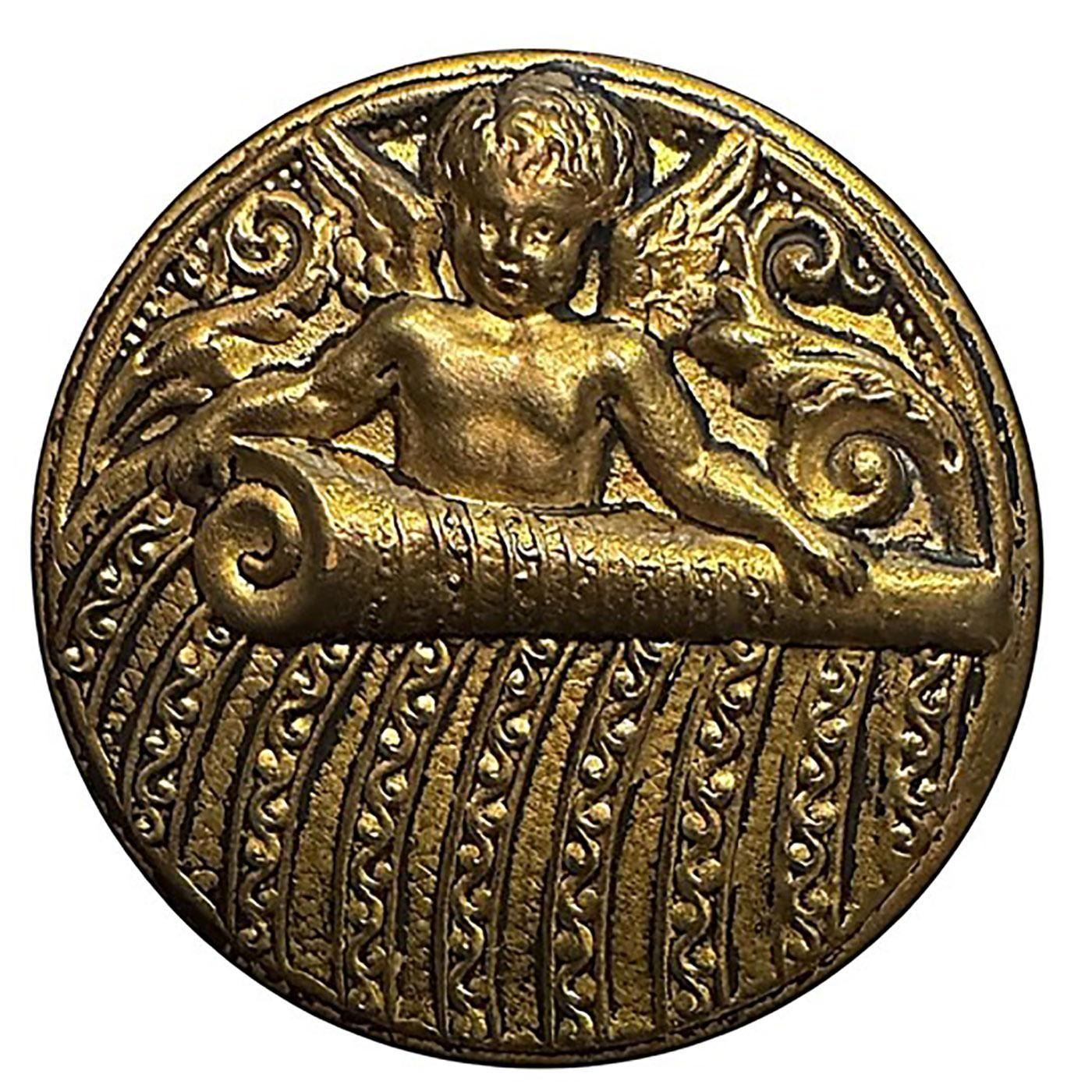 32 S/M/L 19th century metal pictures including Egyptian. This Riker tray (included) consists of several Cherubs and cupid pictorials along with several Egyptian theme buttons. Nice assortment.