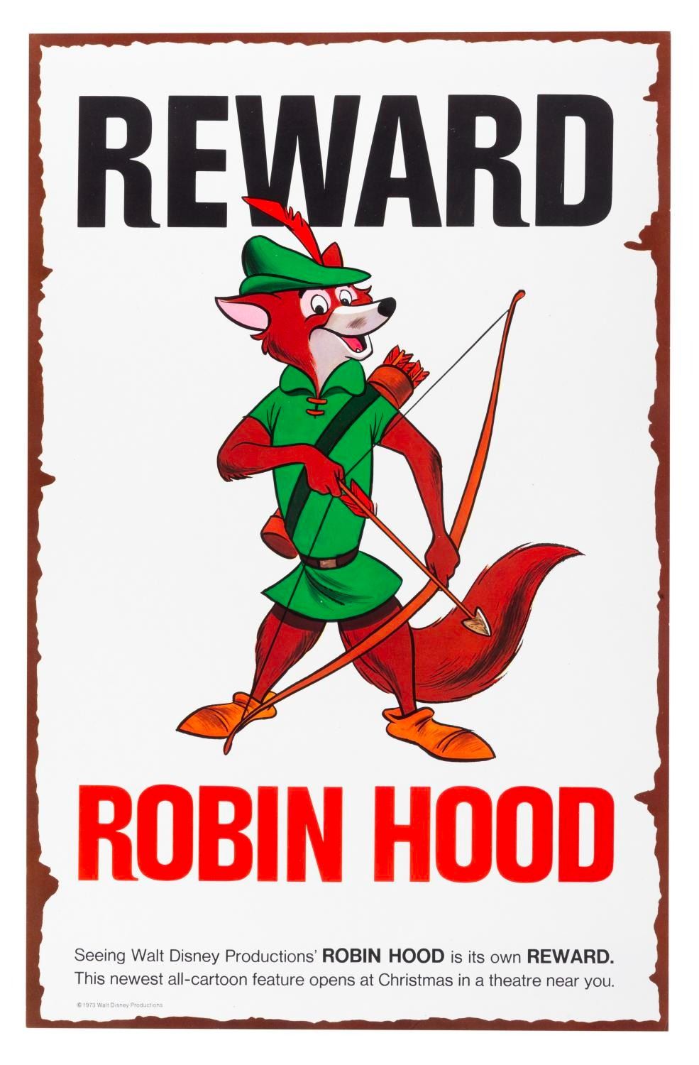 (Disney, 1973) A “Robin Hood” Reward Poster promoting the original theatrical release of the Disney animated feature film. Measuring 11” x 17”, the poster on heavy paper displays in fine condition with very slight wear to two corners.
