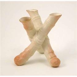 A Robinson & Leadbetter Ltd. posy vase, formed as three bamboo-effect chutes, circa 1910, 5.5in. £60-80