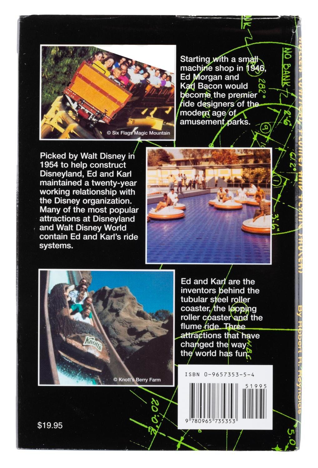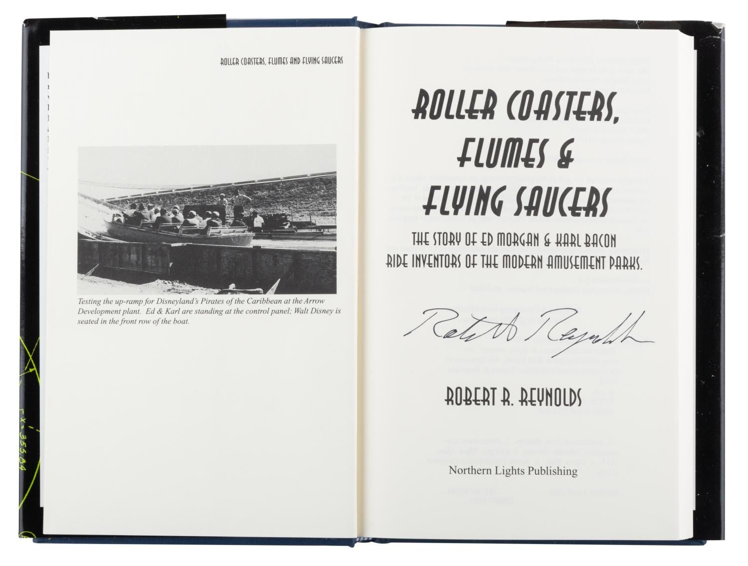 (Northern Lights Publishing, 1999) A signed first edition of Roller Coasters, Flumes, and Flying Saucers: The Story of Ed Morgan and Karl Bacon, Ride Inventors of the Modern Amusement Parks written by Robert R. Reynolds. Measuring 5.75" x 8.75", the 192-page book is in fine condition, while the cover exhibits creases, scratches, and wear.