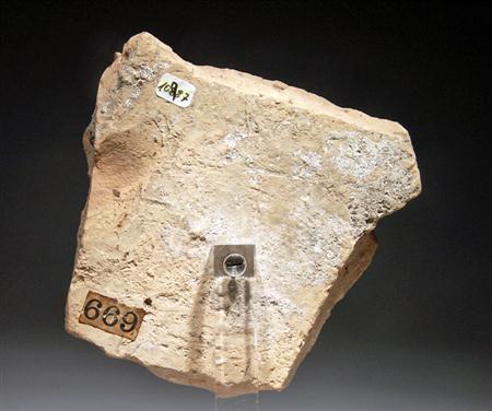 Fragment with some damage as shown; no restoration or repairs; some traces of colour; labels with old inventory numbers on the reverse side; mounted on a custom stand.