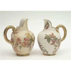 A Royal Worcester blush porcelain jug with floral decoration, patt no.1094, 5ins and a similar jug £150-200