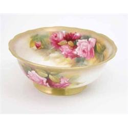 A Royal Worcester bowl, painted with pink roses and gilt borders, date code 1931, 8ins...