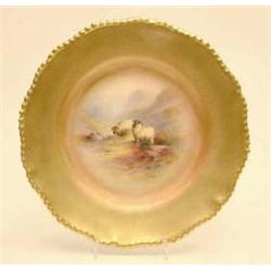 A Royal Worcester cabinet plate with highland sheep, signed E.Barker within a powdered gilt border and shaped gadrooned rim, 10ins £900-1200