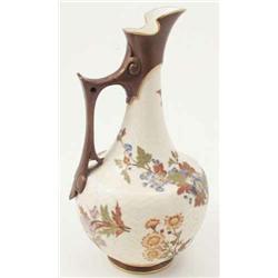 A Royal Worcester ewer, with bronzed spout and handle, the body painted with flowers in enamels and gilt against an embossed ivory ground, date code indistinct, design registered 1884, 12.5 in. £220-260