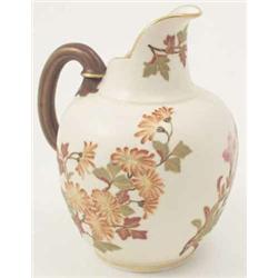 A Royal Worcester flatback jug, painted with flowers in bright enamels and gilt, gilt handle, date code 1887, shape no.1094, 7 in. £120-160