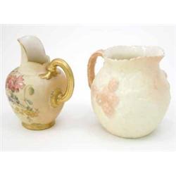 A Royal Worcester jug, lightly painted with flowers against an ivory ground, date code 1898 (5in.) together with a Locke & Co. Worcester jug moulded with raspberries and leaves, 4.75in. £120-150
