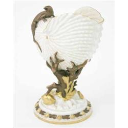A Royal Worcester nautilus vase, with lizard surmount, supported upon a branch and gilt shells, on circular base, date code 1883, restored, 8.5in. £200-250