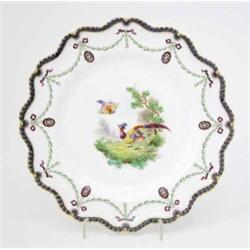 A Royal Worcester plate, painted with exotic birds by George Johnson between printed border of garlands and gadrooned rim, date code 1912, 9in. £100-200