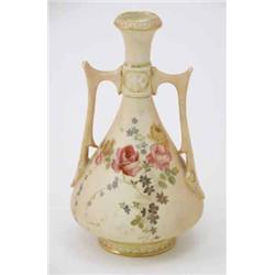 A Royal Worcester two-handled vase, painted with pink and yellow roses against a blush ivory ground, date code 1895, 5.75in. £120-150