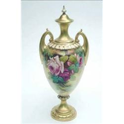 A Royal Worcester vase and cover with gilt handles, painted with roses, signed F.Harper, patt no.H313, 13ins £400-500