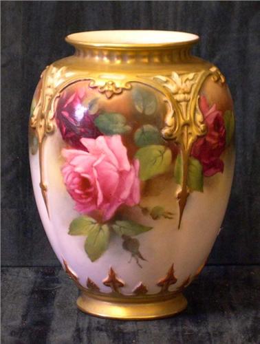 A Royal Worcester vase painted with roses, c.1912, height 14.5cm