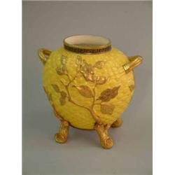 A Royal Worcester yellow glazed basket moulded vase, with rustic feet 7in. £300-500