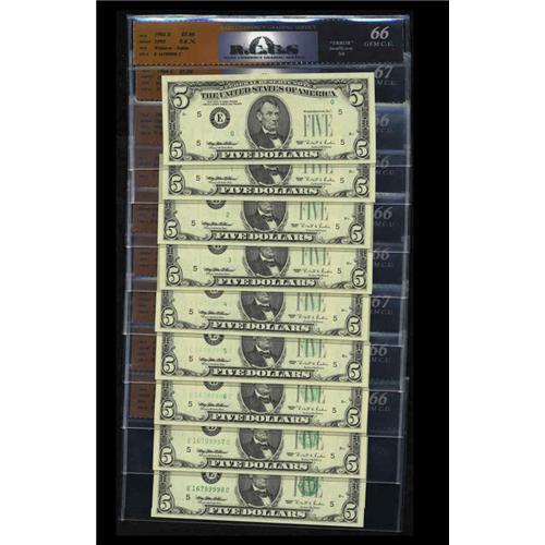 A Run of Fr. 1984-E $5 1995 Federal Reserve Note Third [A Run of Fr. 1984-E $5 1995 Federal Reserve