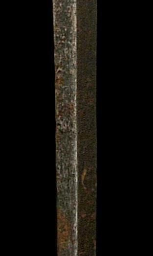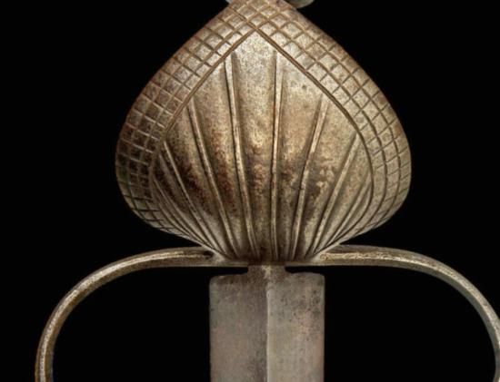 ET0606120035 A SAILGUARD SWORD Northern Italy, Venetian Republic, late 1500?s With robust rapier blade of diamond section, faceted quillons turned downwards, cannelured triangular guard chequered at the edges, fig-shaped pommel that is also grooved with filleting; metallic wire-covered wood grip. A rare weapon in excellent condition. L. 88 cm.