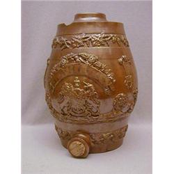A SALT-GLAZED STONEWARE BARREL, c.1835, raised decoration, Hanoverian Royal Arms, national symbols, labelled 'Irish Whiskey', height 38cm £30-50