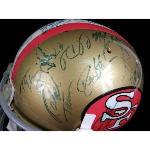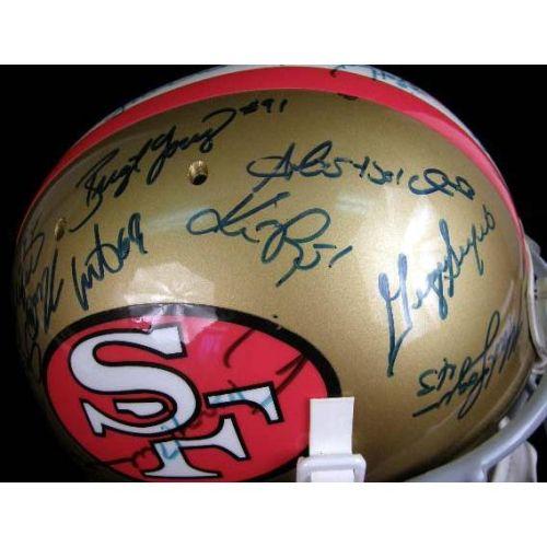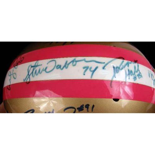 A SAN FRANCISCO GIANTS AUTOGRAPHED HELMET<BR><BR>From Superbowl XXIX, Giants verses San Diego. Includes signatures from Bryant Young, Lee Woodall, Harris Barton, John Taylor, Bart Oates, Steve Young, and others.