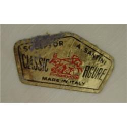 A. SANTINI ALABASTER SCULPTURE of three children with eagle. Marked on reverse "A. Santini-Italy". Labeled with sticker on bottom. 8" H