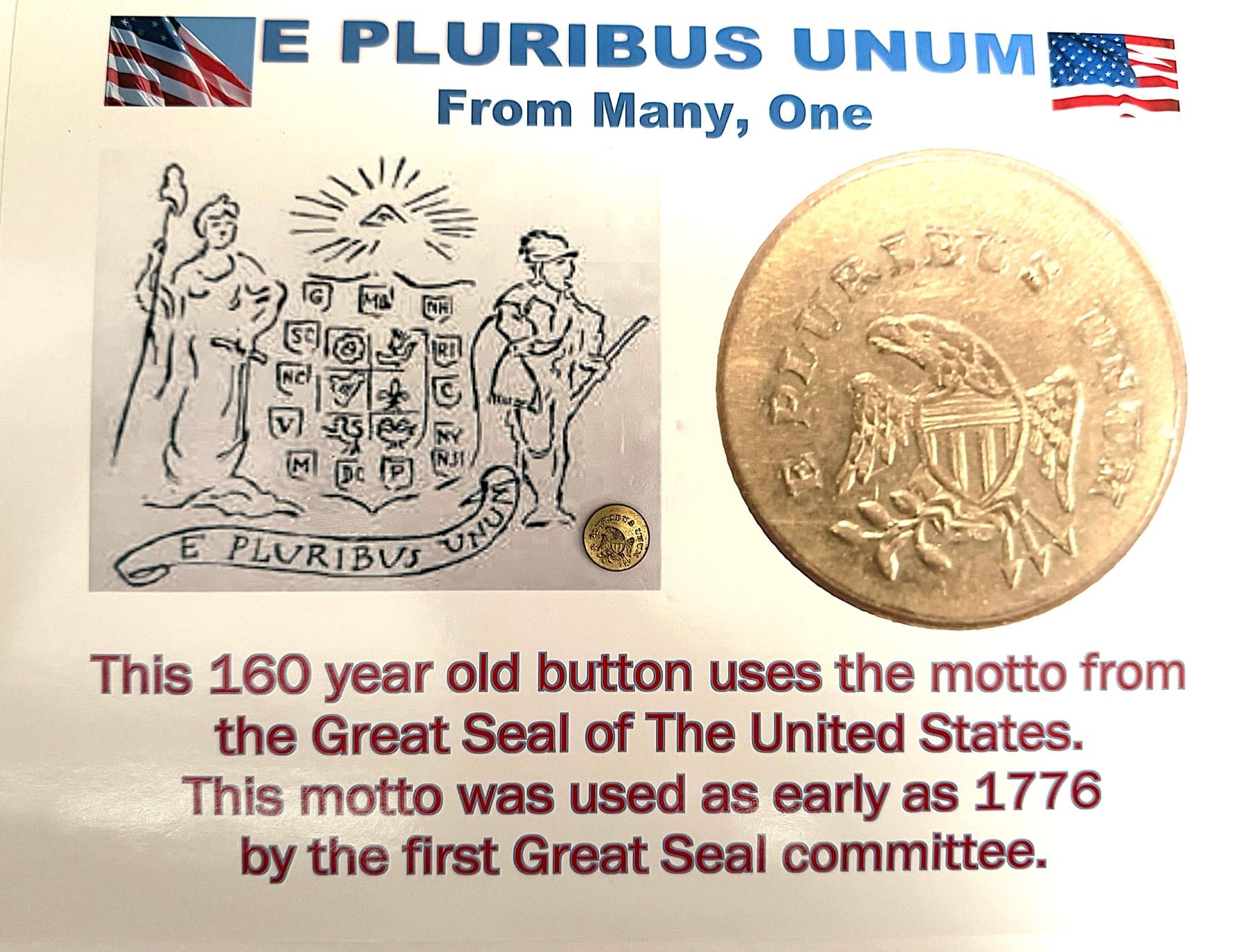 1 Small early 19th century button with an American Motto.