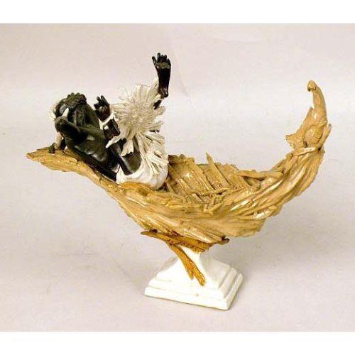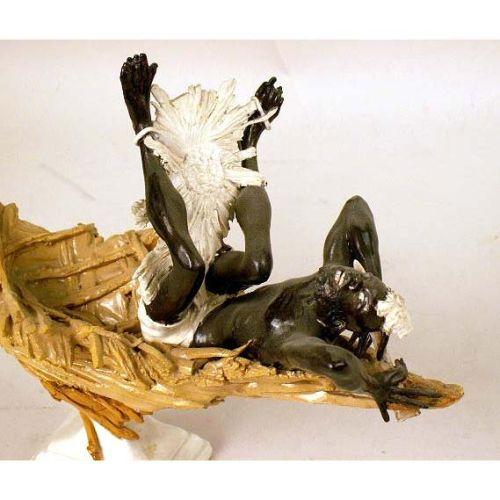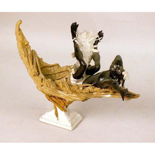 A SCULPTURE OF A MAN IN A BOAT<BR><BR>Bears signature La Spada (Italian), losses, 9"h x 11 1/2"l