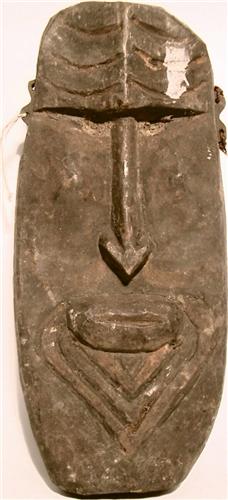 A SEPIK ANCESTOR MASK, of hardwood in ovoid form,