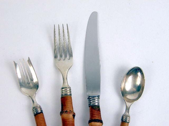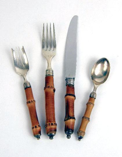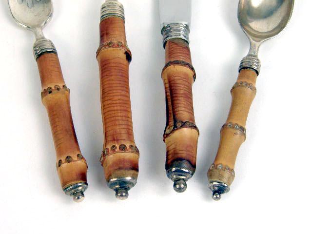 A SET OF BUCCELATTI "TAHITI" PATTERN STERLING SILVER WITH BAMBOO HANDLED DINNER KNIVES AND FORKS