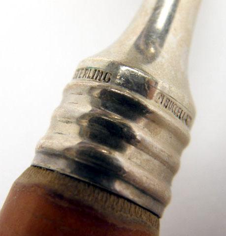 Together with a matching teaspoon and salad fork. Dinner knife 9 3/4"l, dinner fork 8 3/4"l Handles worn, some loose from handles.