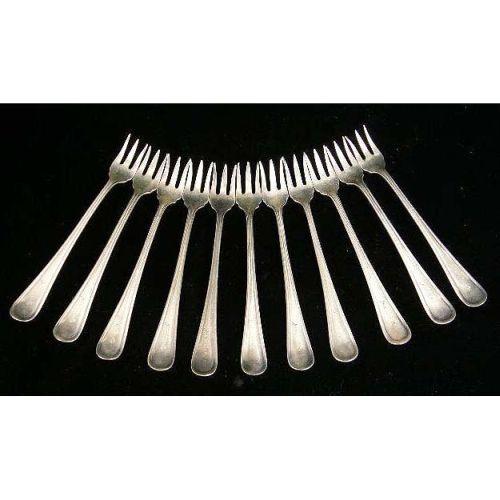 A SET OF ELEVEN BLACKSTONE SILVER PLATED SEAFOOD FORKS<BR><BR>with the engraved inscription "Jack & Charlies", referencing Jack Kriendler and Charlie Berns` famed "21" speakeasy, originally called "Jack & Charlie`s 21".