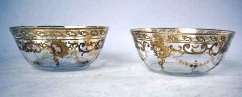 A SET OF ELEVEN COLORLESS GLASS AND GILT ENAMEL FINGER BOWLS;