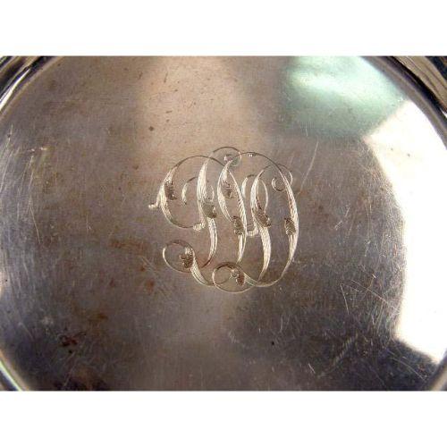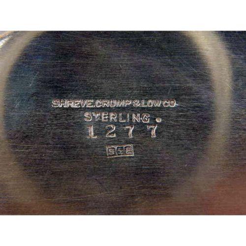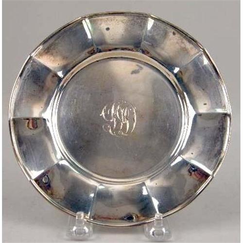 A SET OF ELEVEN SHREVE CRUMP & LOW STERLING SILVER BREAD & BUTTER PLATES<BR><BR>With centered monogram, #1277, paneled border, each 6-1/2"diameter, total weight 50 T.O.