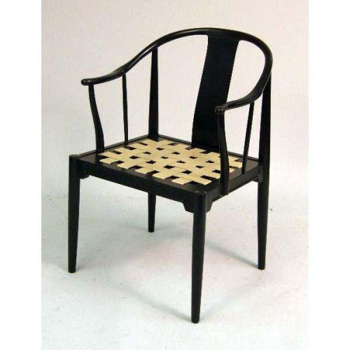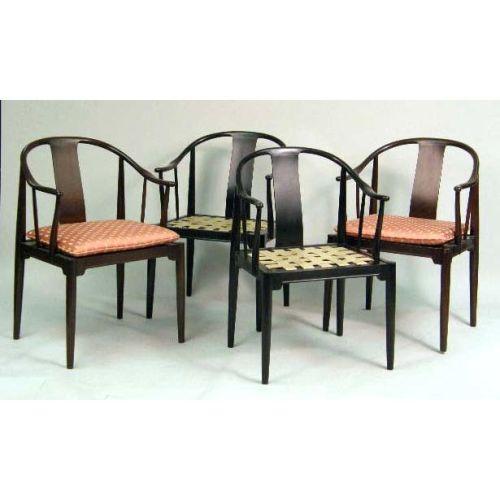 A SET OF FOUR FRITZ HANSEN BLACK-LACQUER "HORSE SHOE" ARMCHAIRS<BR><BR>Danish, bears a dated label on underside of rear rail, "Fritz Hansen/Made in Denmark/1983/Danish," 33-1/2"h