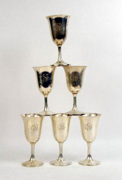 A SET OF FOURTEEN WALLACE STERLING SILVER WATER GOBLETS