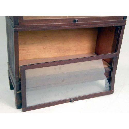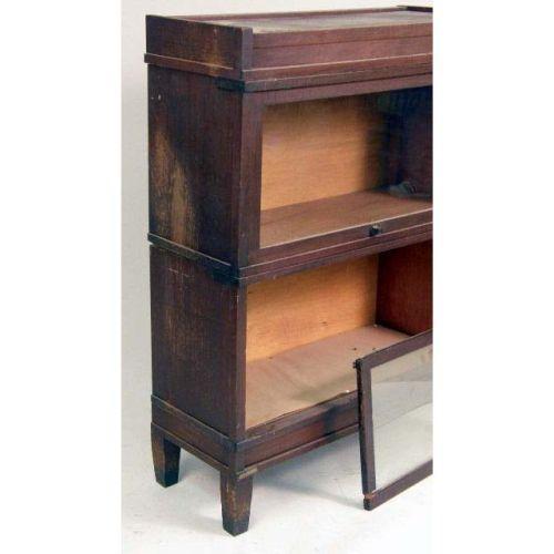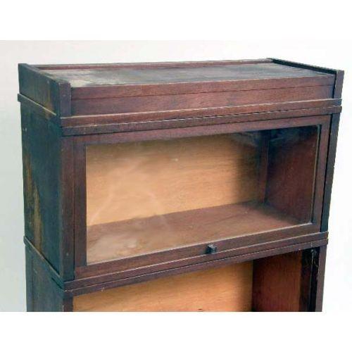 A SET OF MAHOGANY TWO-TIER BARRISTER BOOKCASES<BR><BR>American, cracks to glass, distressed, 47"h x 35-1/2"w x 14"d