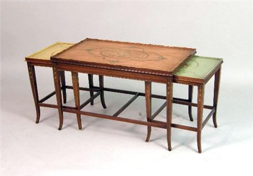 <b>A SET OF NEOCLASSICAL-STYLE PAINT-DECORATED NESTING TABLES</b>
