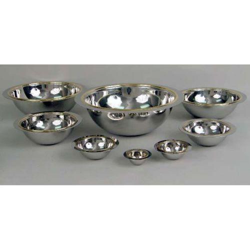 A SET OF SERAFINO ZANI, ITALY EIGHT SILVER TONE METAL WITH GOLD TONE RIMS GRADUATED BOWLS<BR><BR>Largest, 12-3/4"diameter, smallest 2-3/4"diameter