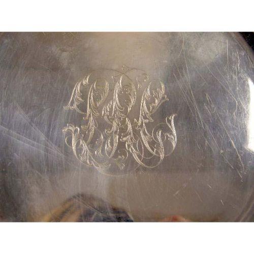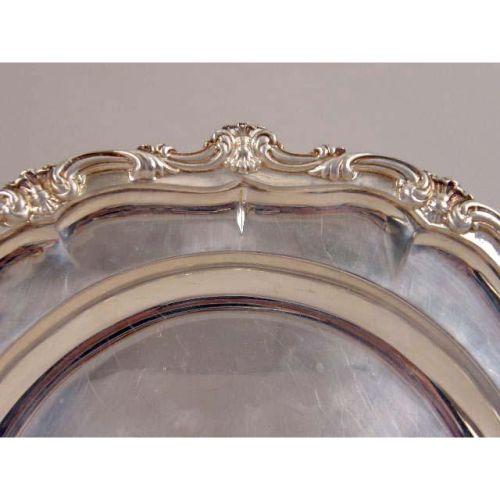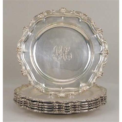A SET OF SIX AMERICAN STERLING SILVER ROCOCO SERVICE PLATES<BR><BR>with central monogram, 10"diameter, total weight apx. 124 T.O.