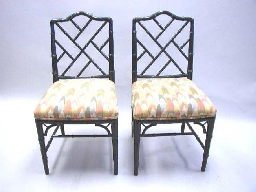A SET OF SIX GEORGE III STYLE COCKPEN SIDE CHAIRS; dark green frames with bargello fabric