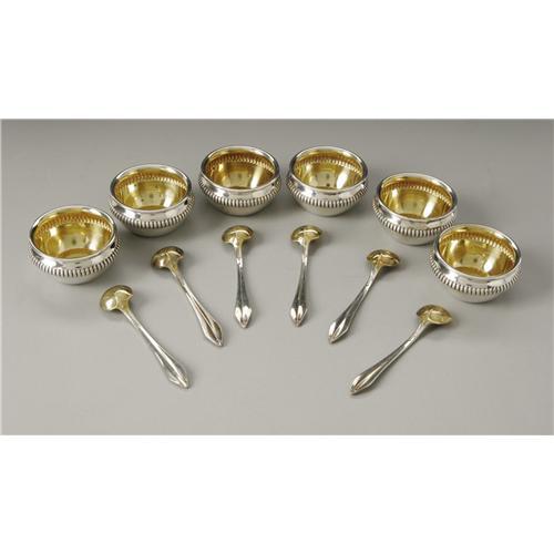 A SET OF SIX GORHAM STERLING SALTS WITH SPOONS A Set Of Six Sterling Salts With Spoons