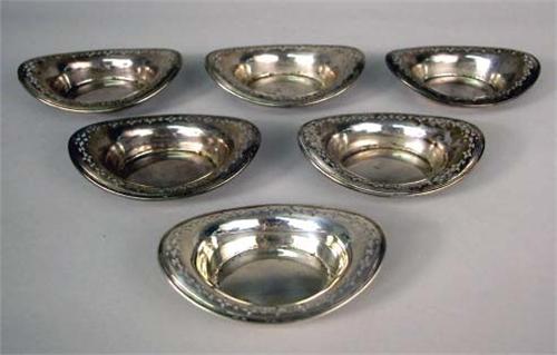 A SET OF SIX TIFFANY & CO. MAKER STERLING SILVER OVAL NUT DISHES; #17755A 652 M Mark, 3-3/4"l, total weight apx. 5 T.O.