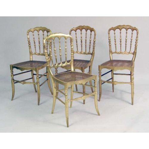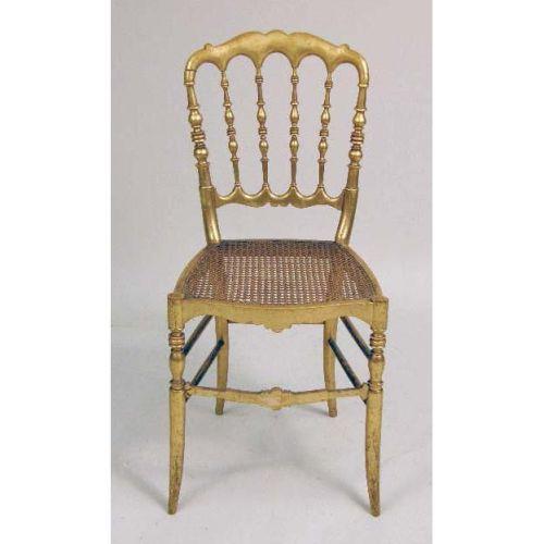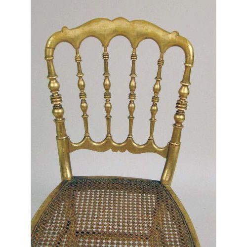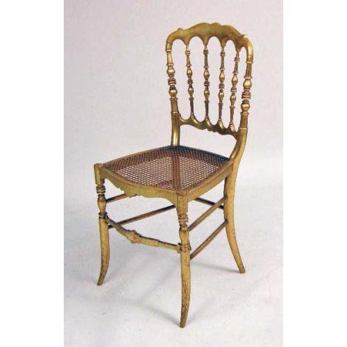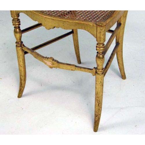 A SET OF SIX VICTORIAN GILTWOOD BALLROOM CHAIRS<BR><BR>Each backrest with serpentine top rail, five turned bobbin splats, serpentine caned seat, on turned legs, gilding in poor condition
