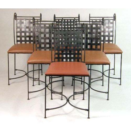 A SET OF SIX WROUGHT-IRON GARDEN CHAIRS<BR><BR>each 38" h x 18" w x 16" d.
