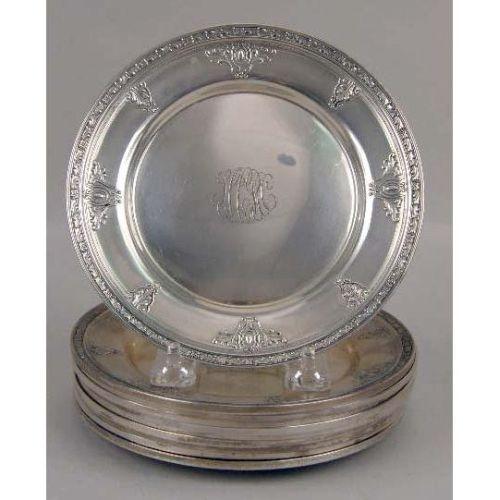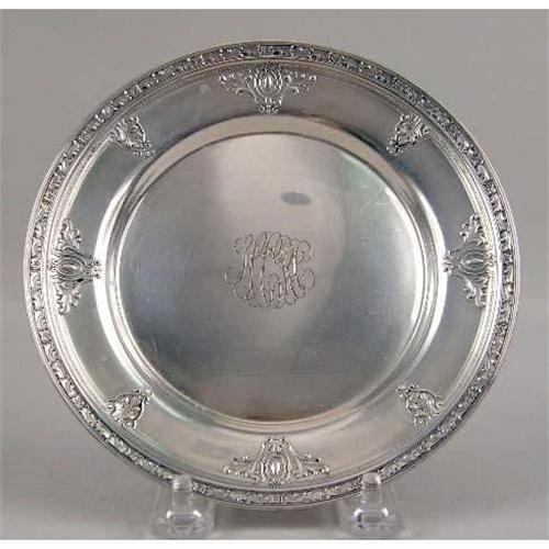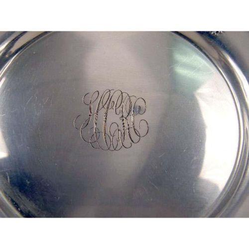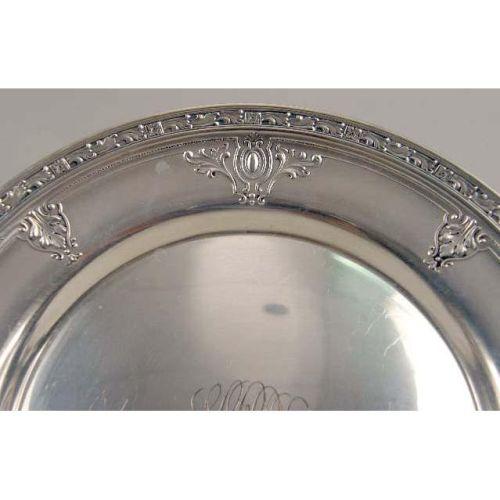 A SET OF TEN GORHAM "CINDERELLA" PATTERN STERLING SILVER BREAD & BUTTER PLATES<BR><BR>Monogrammed, #A20258, each 6-1/8" diameter, total weight apx. 39 T.O.