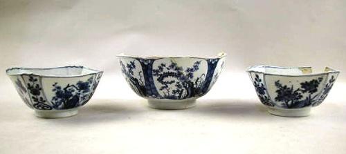 A SET OF THREE ORIENTAL PORCELAIN BOWLS; Damage and breakage